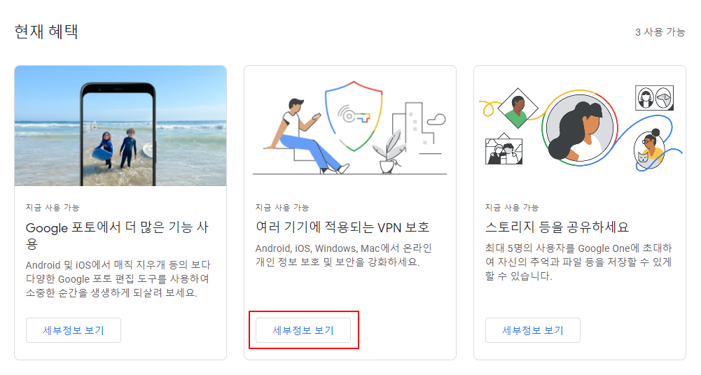 3. 아래 화면의 "여러 기기에 적용되는 VPN 보호" 항목의 "세부정보 보기" 클릭