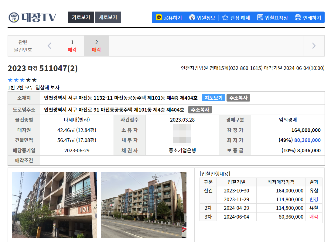 같은 건물의 두 개 물건이 동시에 경매에 나온 물건 입니다.