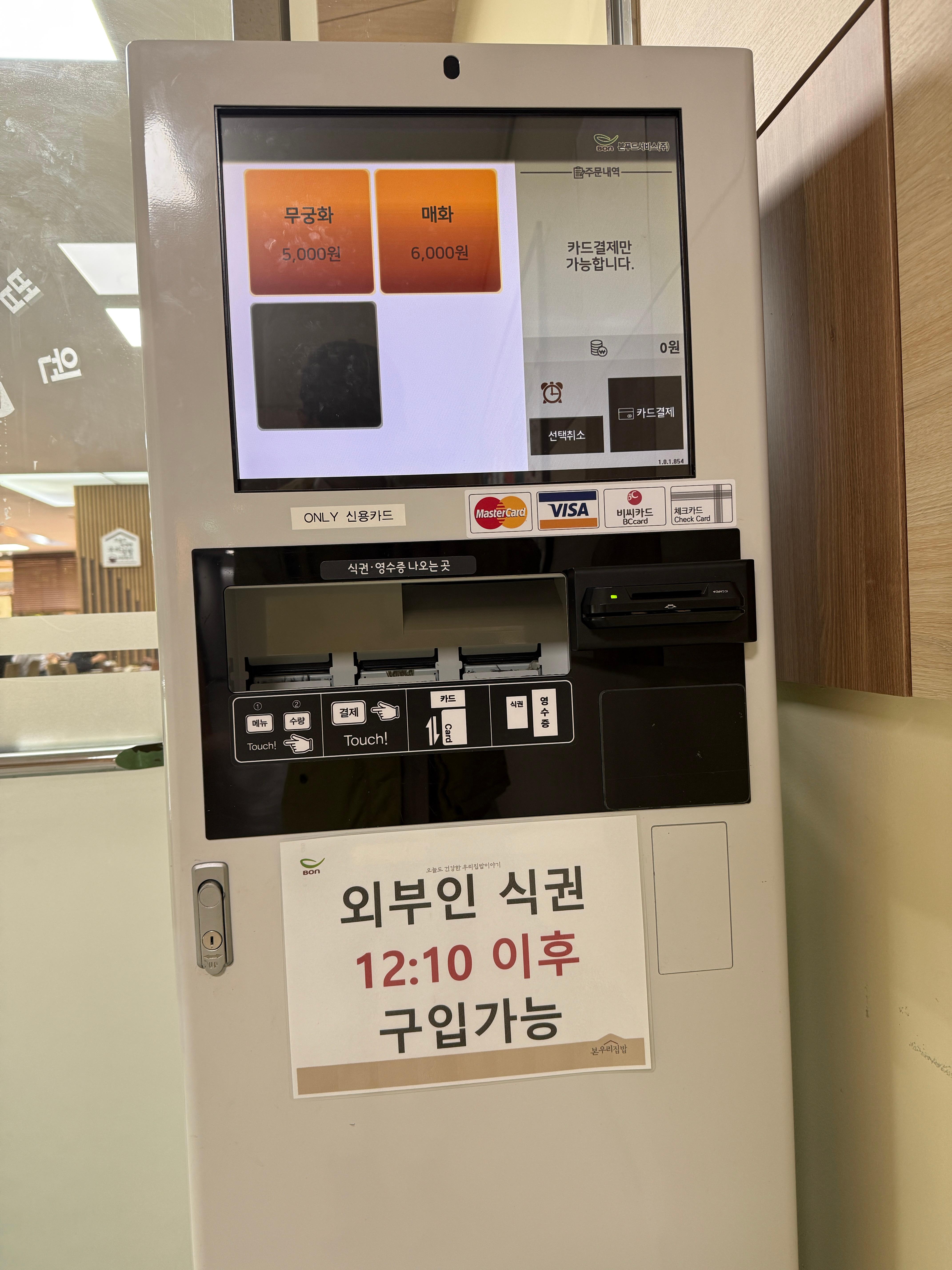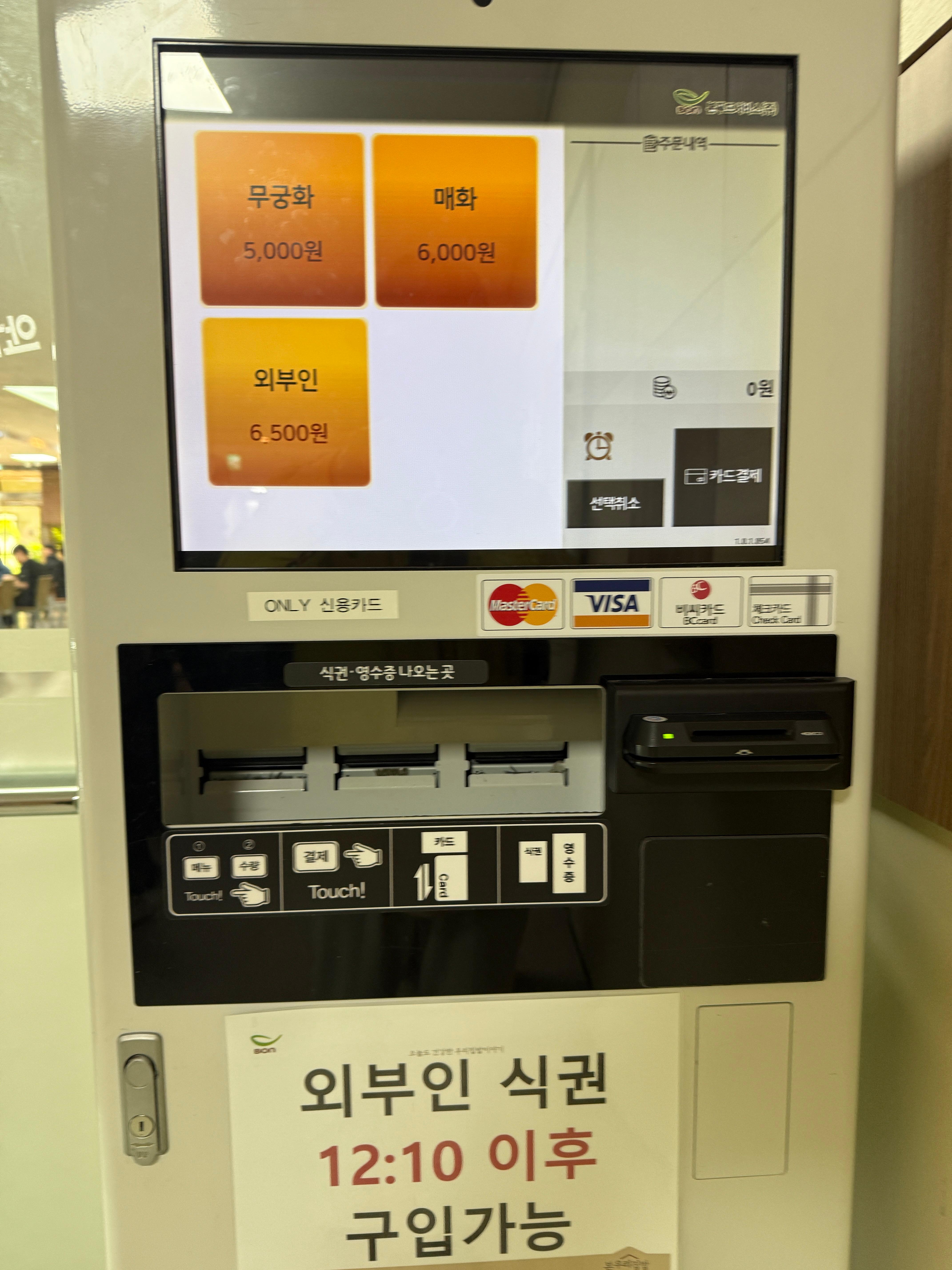 12시 10분 이전에는 외부인 식권이 구매 불가능 하게 되어 있다가, 시간이 되니 저렇게 식권 구매가 가능하게 되더군.