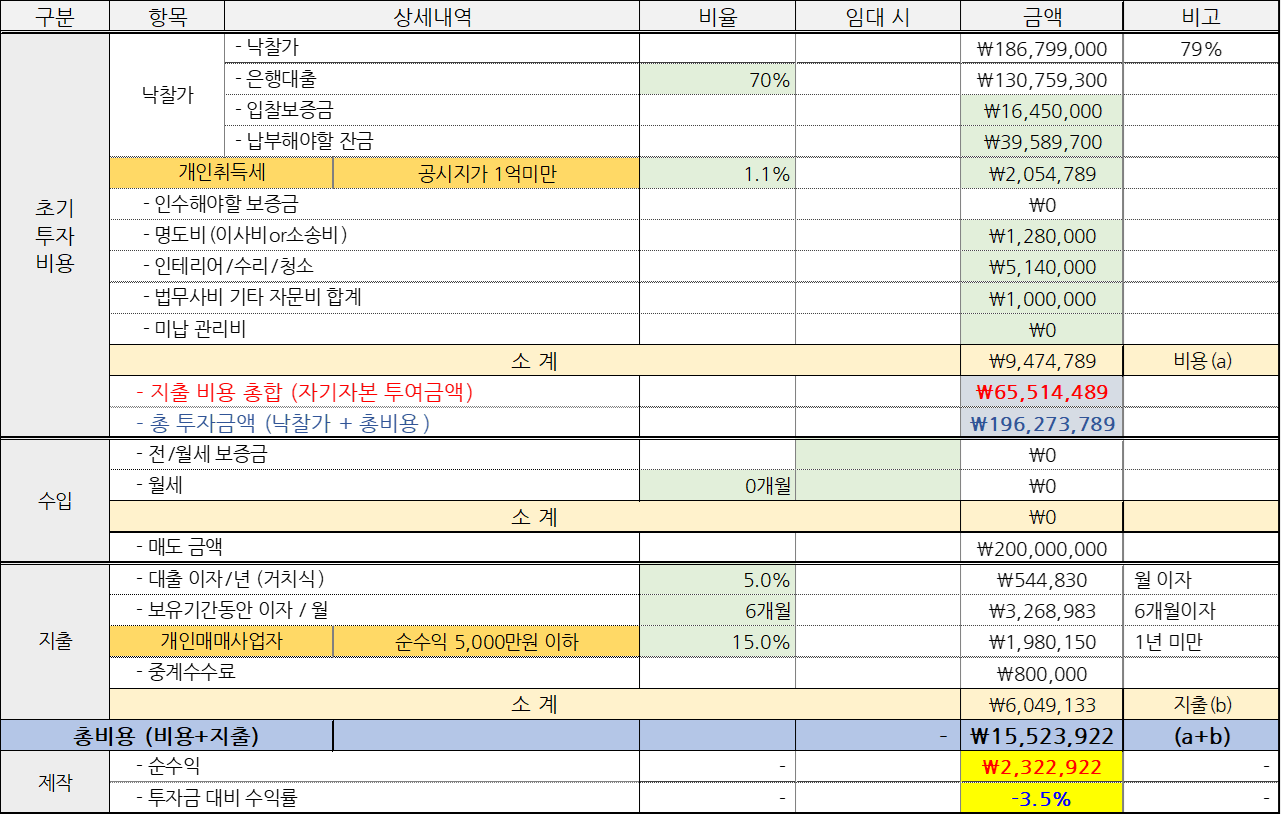 매도 가격을 2억원 으로 가정하고 수익률을 계산해 봤어.