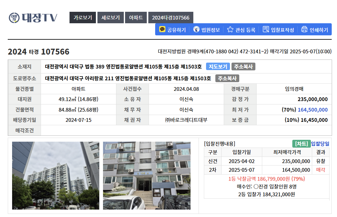 이렇게 나의 첫 대전지방법원 경매는 끝났지만...