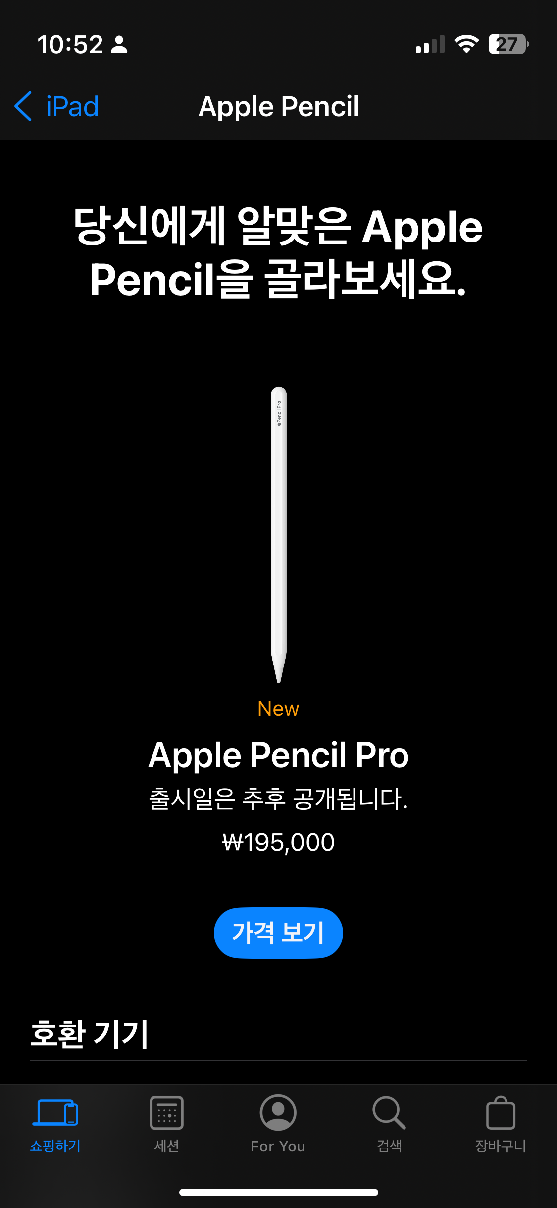 Pencil Pro - 195,000원 으로, 새로 나온 iPad Pro M4 및 iPad Air M2 모델 에서 호환 가능합니다.