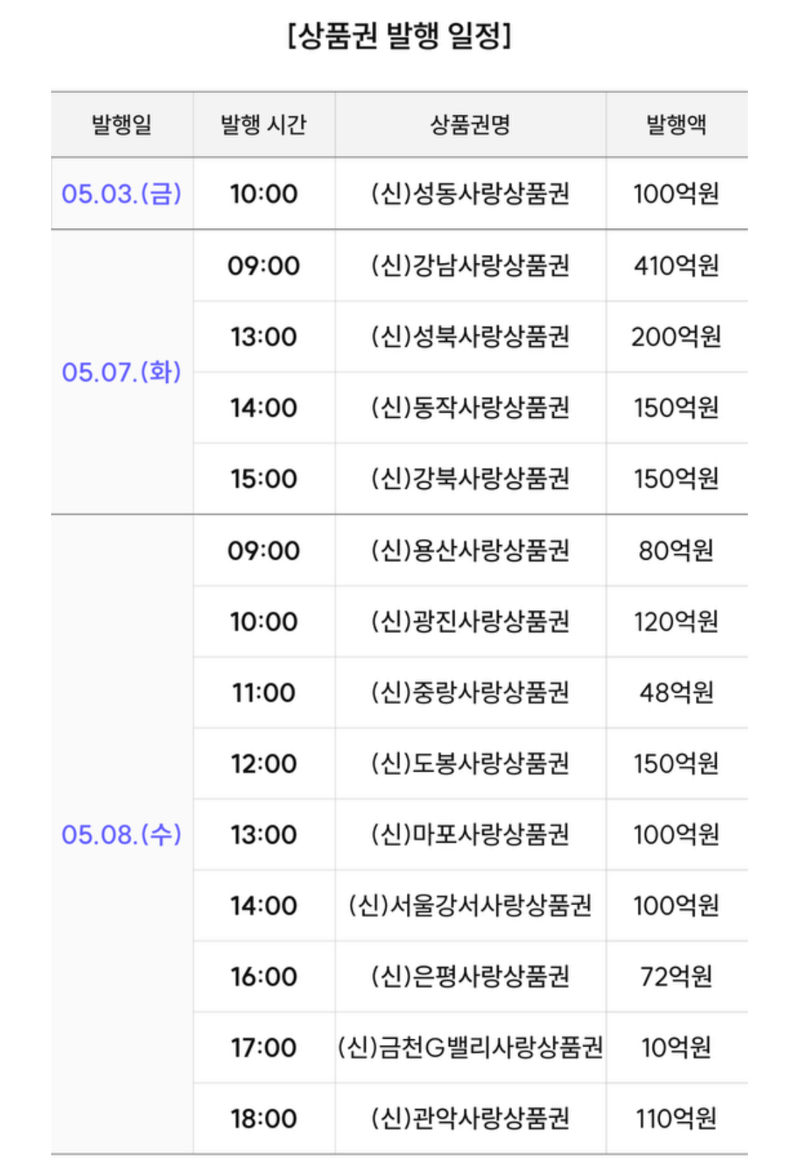 개인적으로는 이번 발행되는 상품권 중에 빠진 자치구가 너무 많아서 좀 아쉽습니다.