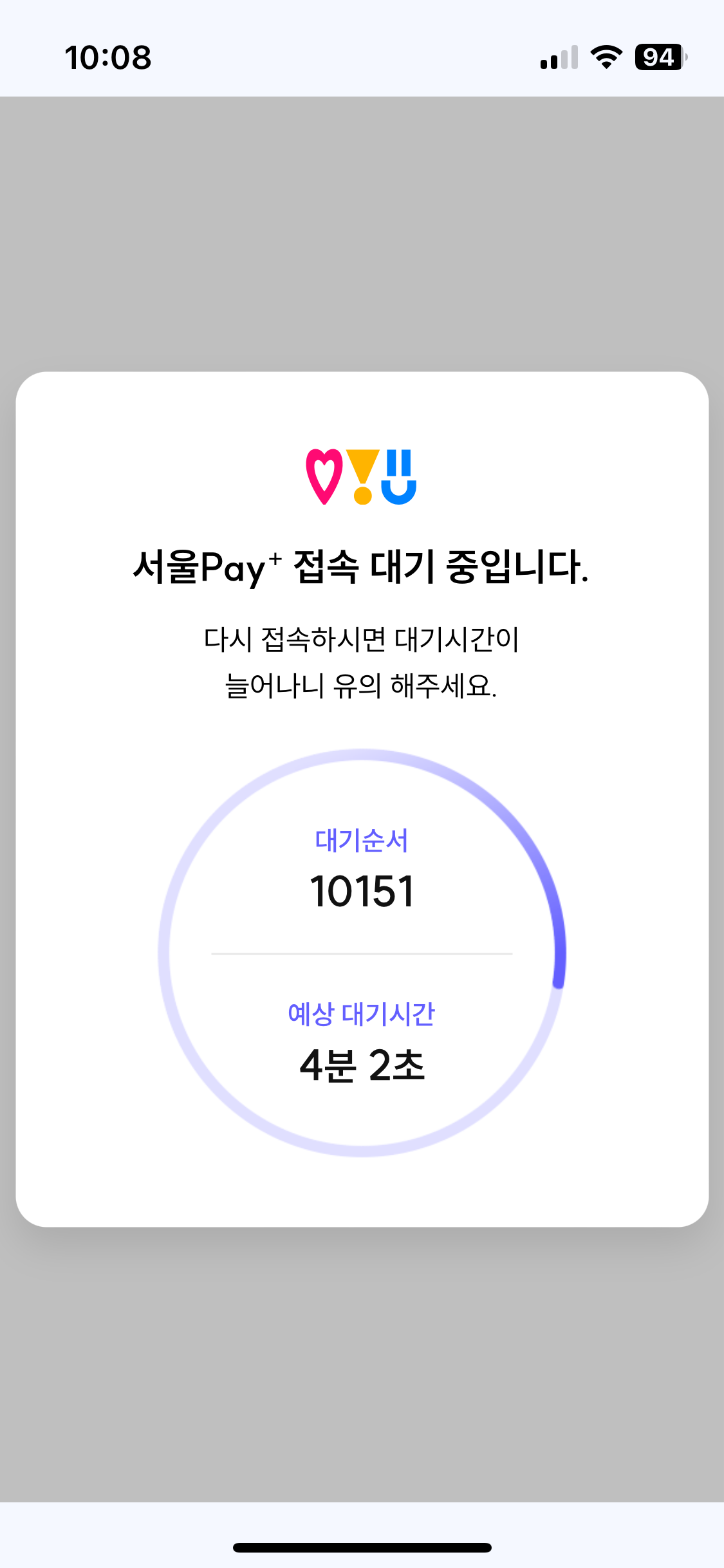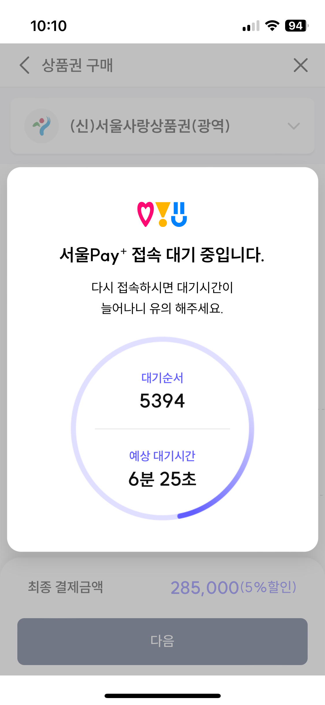 결제 시에도 대기 시간 떴고, 이건 꽤 시간이 걸렸습니다.