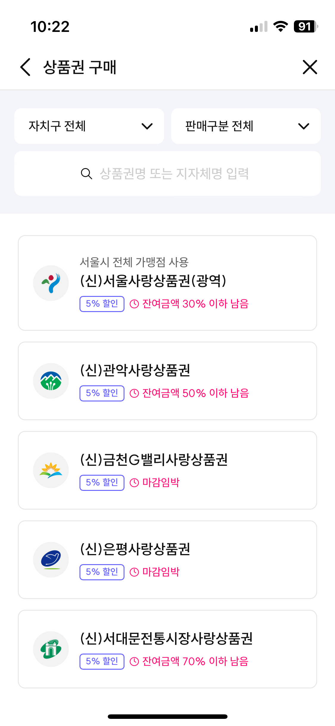 서울시 전 자치구에서 사용 가능한 서울사랑상품권이 발행 되었습니다.