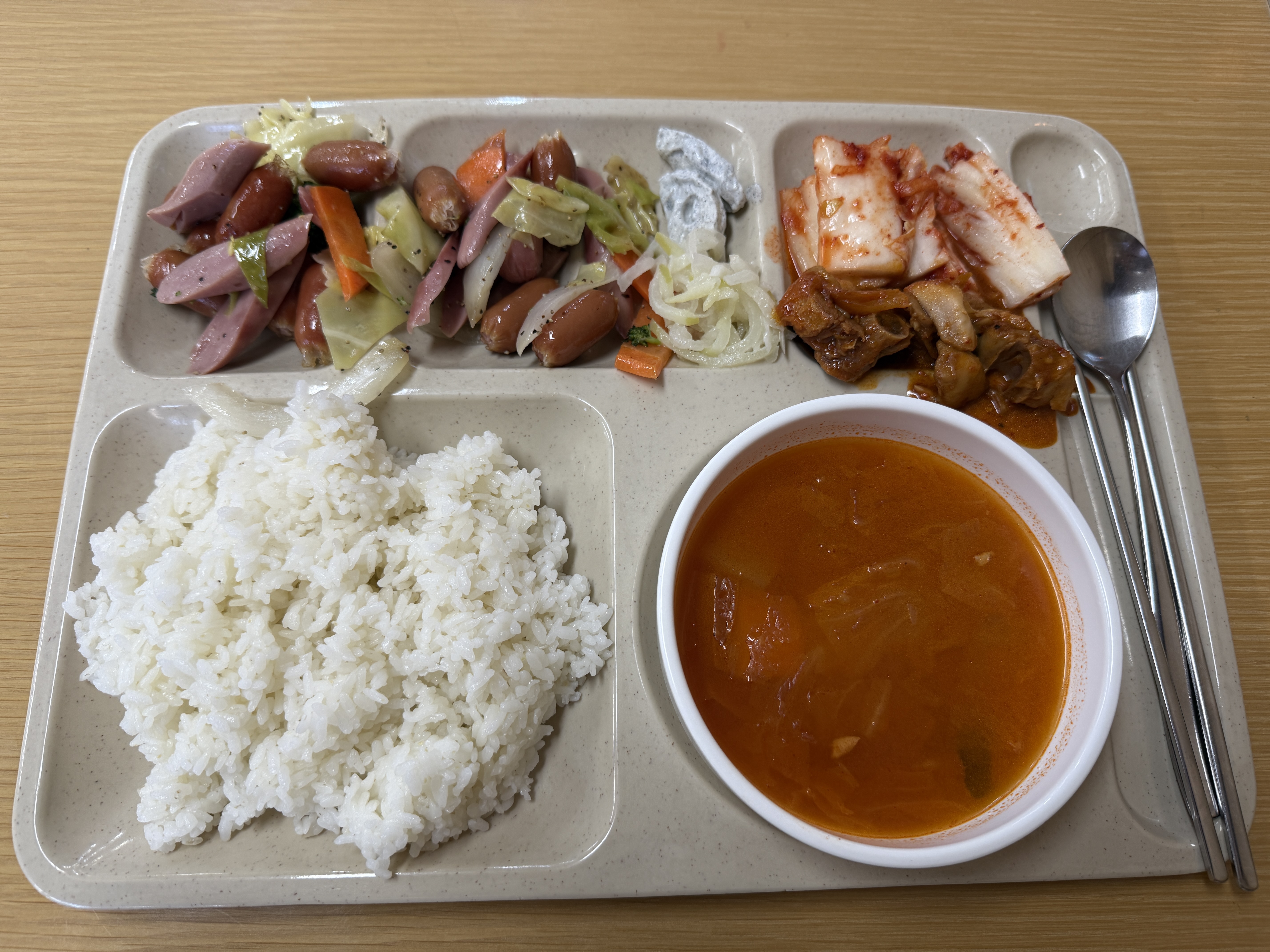 오늘의 구내식당 메뉴는 돼지고기 김치찌개 + 쏘야 볶음 이었는데.... 내 찌개의 돼지고기는 어디에???