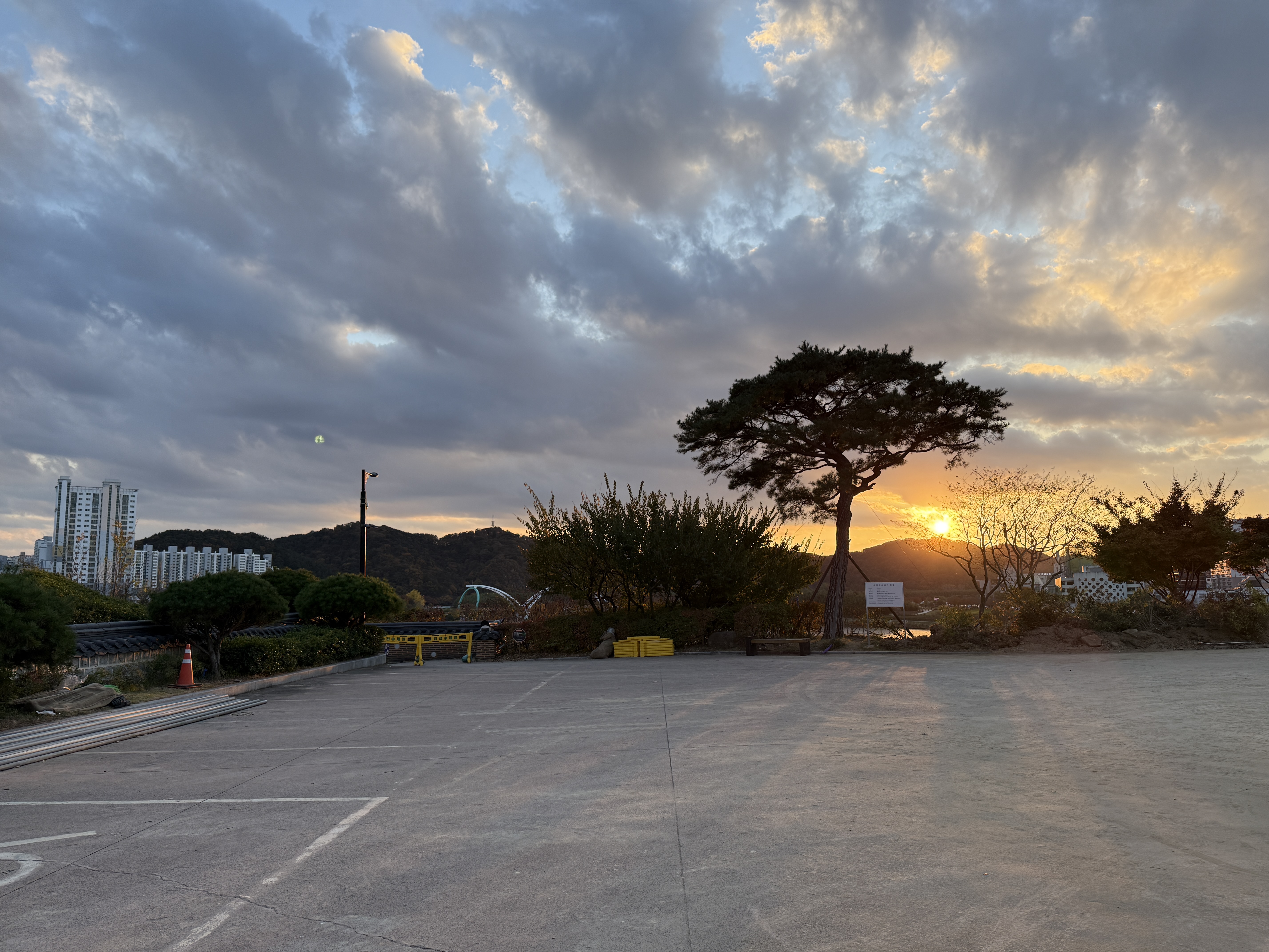 때마침 낙조가 지고 있어서 사진으로 담아 보았다.