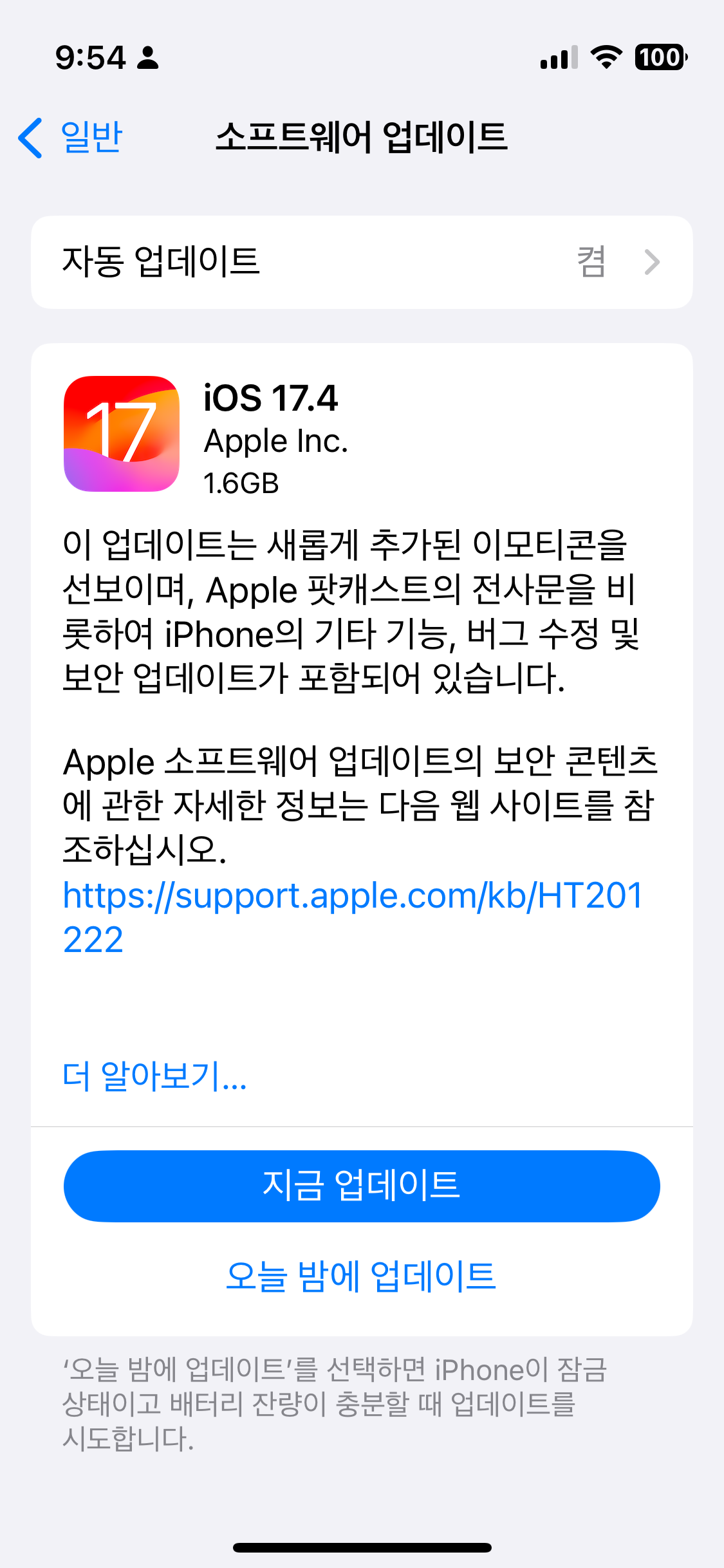 다만, 해당 버전의 설치를 위해서는 아이폰의 OS Update 가 선행되어야 했습니다.