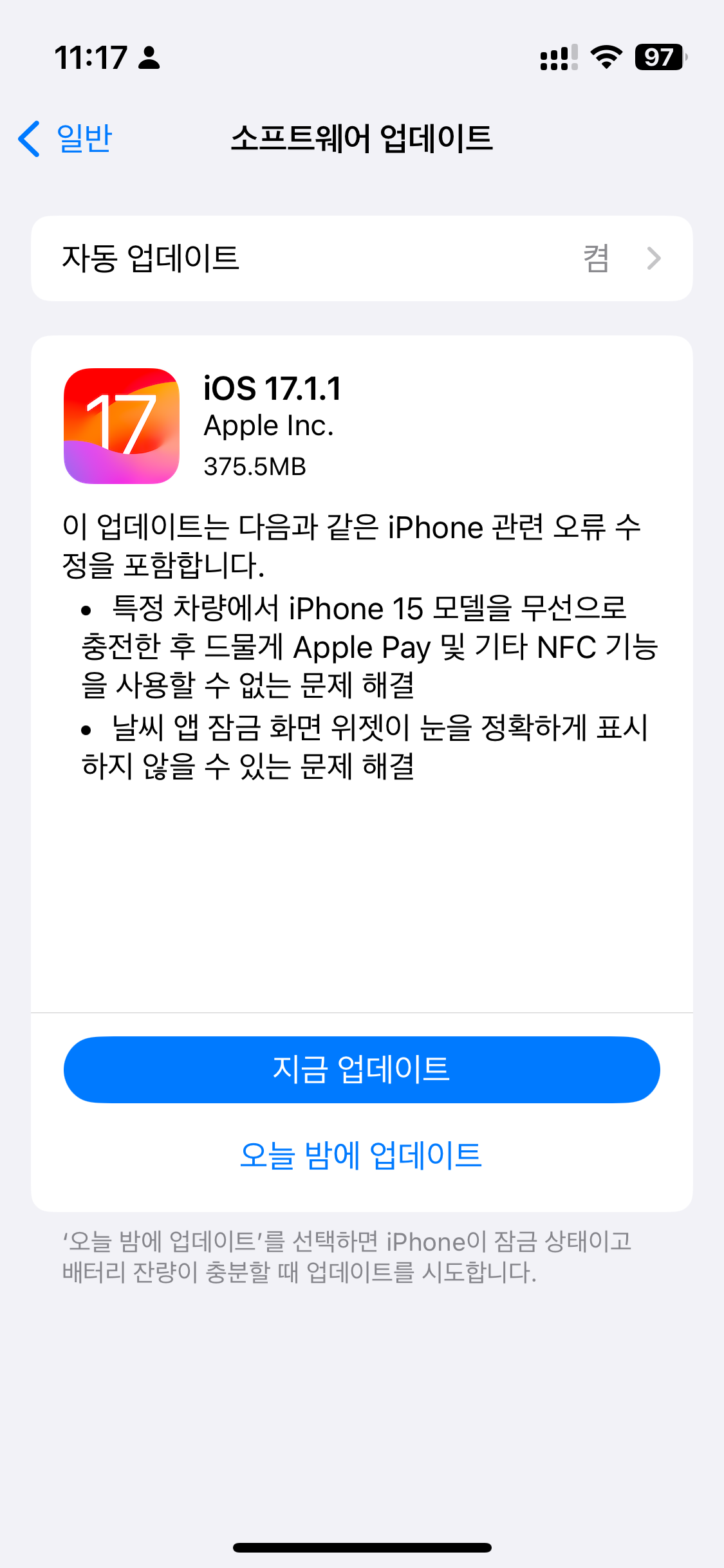 iOS 17.2 가 배포될 줄 알았는데, 17.1.1 이 배포된 것을 보니 17.1 에서의 위젯 문제가 좀 나타난 것으로 보입니다.
