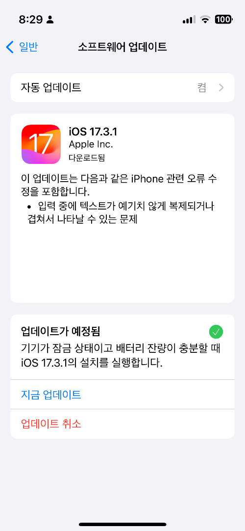 애플이 iOS 17.3.1 버전을 배포 했습니다.