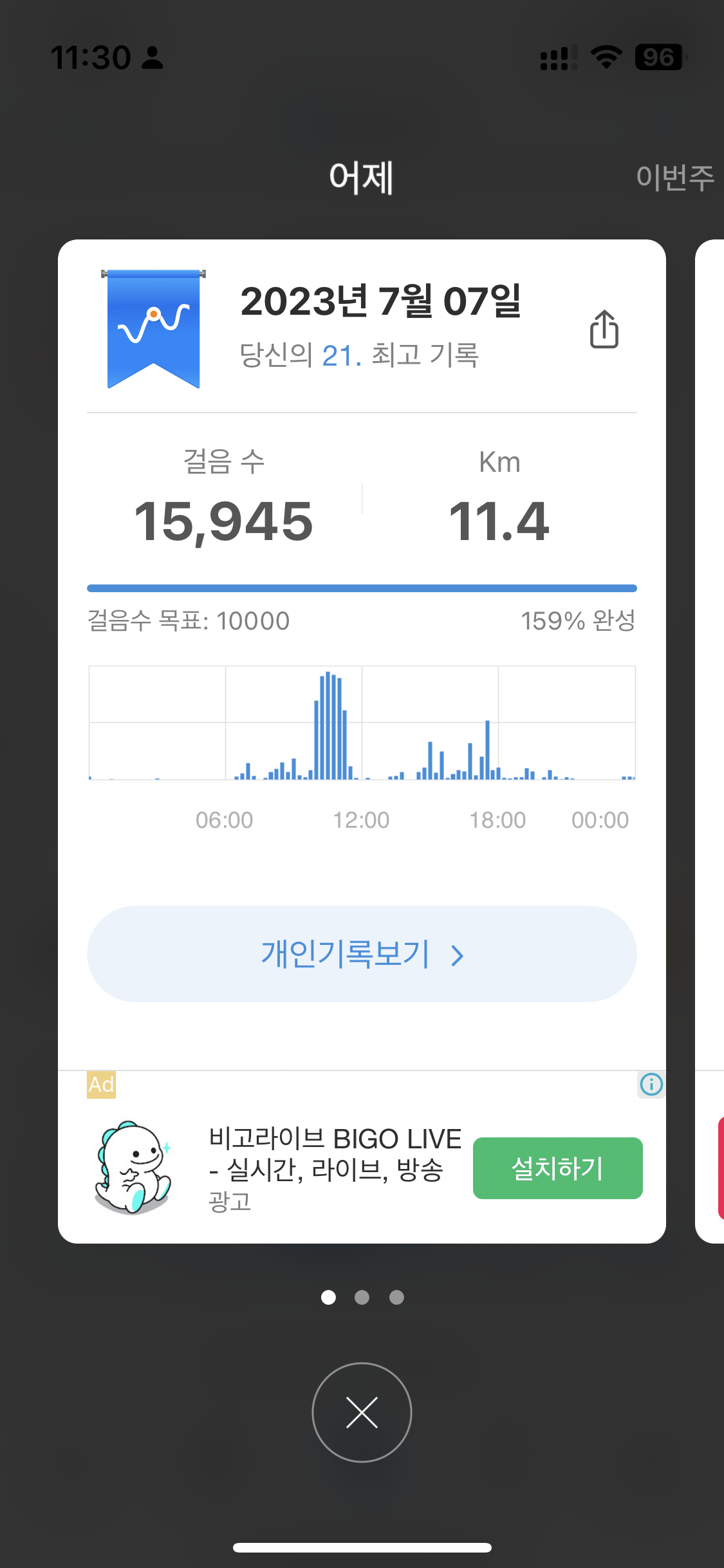 Pacer 기록보다 보수계 기록이 적은 이유는 애플워치에서 측정된 데이터를 가져오지 못해서 인 것으로 보인다.